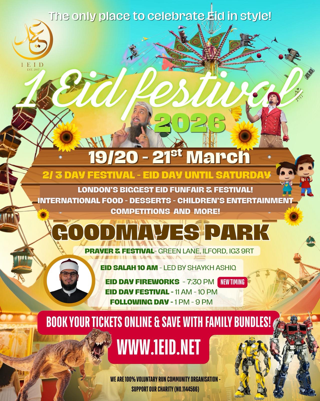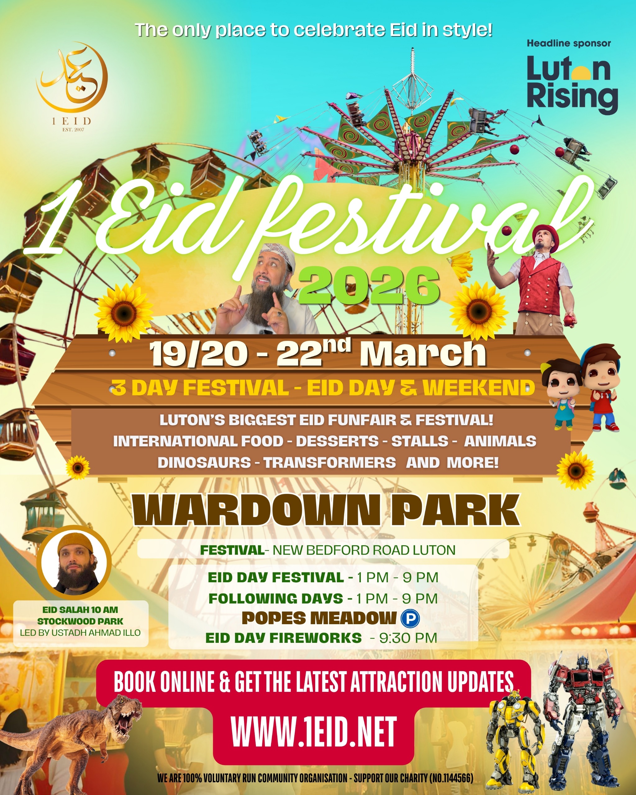 HEADLINE SPONSOR FOR 1EID LUTON 2026 When is Eid? Find out first. Download the app that keeps you up to date. “When’s Eid?” Download free on Apple and Android. LUTON EID FESTIVAL DETAILS ALL EVENT DAYS will have a full Eid fair with rides and games, as well as Muslim shopping festival: Address: Festival: Wardown Park, New […]